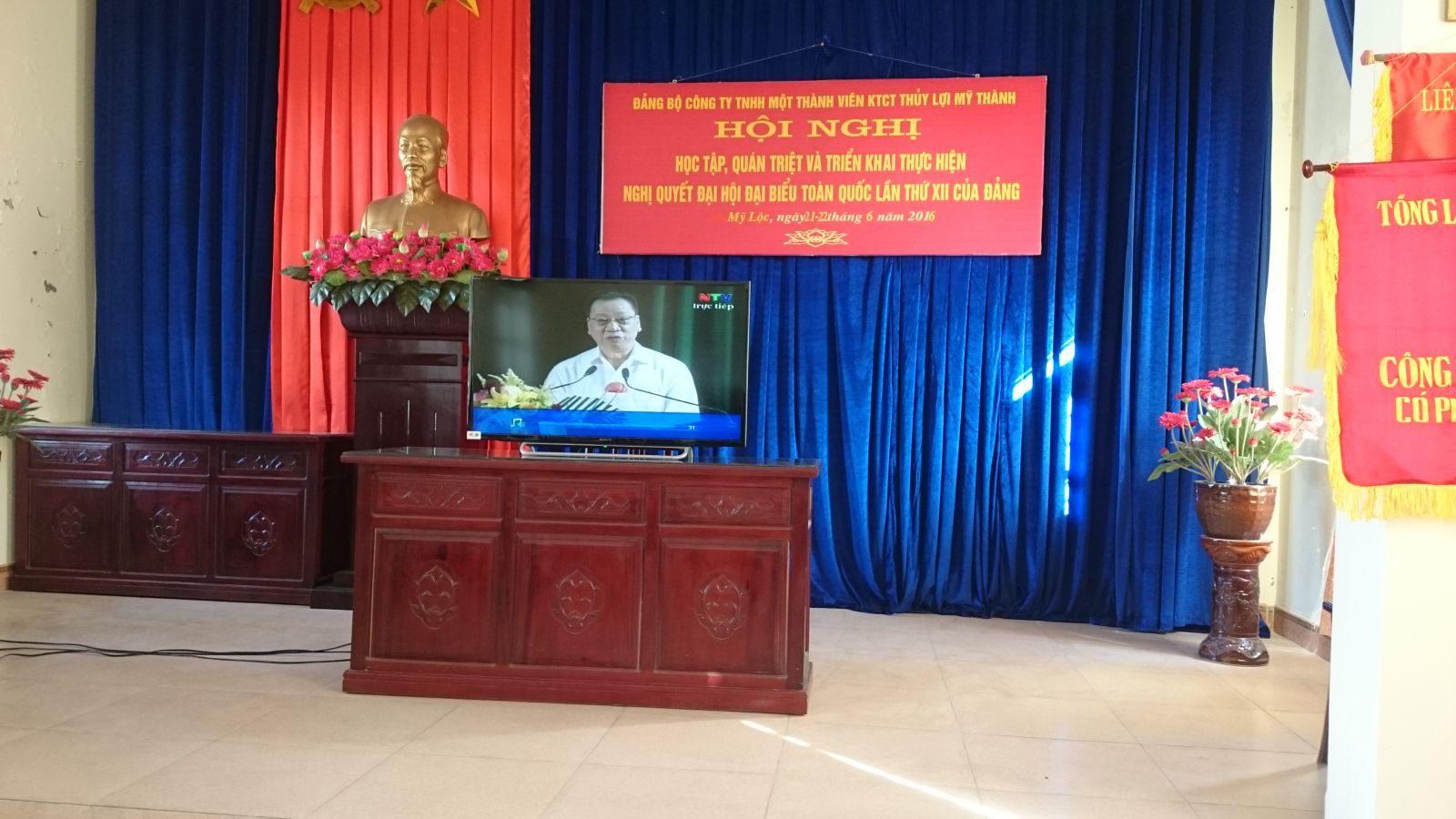 Ngay từ đầu giờ sáng, các đảng viên thuộc Đảng bộ công ty TNHH MTV khai thác công trình thuỷ lợi Mỹ Thành đã tập trung đông đủ tại hội trường công ty để xem truyền hình trực tiếp chương trình học tập, quán triệt và triển khai thực hiện Nghị quyết Đại hội XII của BCHTW Đảng do GS-TS Phùng Hữu Phú – Phó chủ tịch thường trực chuyên trách Hội đồng lý luận Trung Ương giảng.