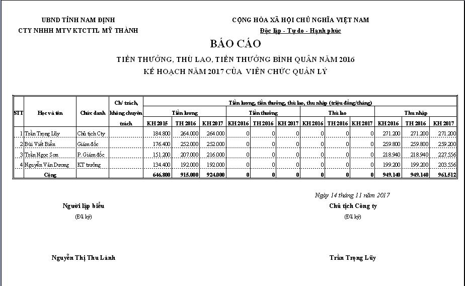 Báo cáo công khai chế độ lương, thưởng 2016 07-10-2016