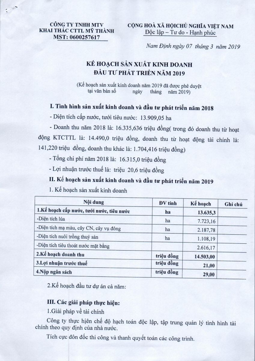- Quyết định về việc phê duyệt danh mục, kế hoạch sửa chữa thường xuyên công trình thuỷ lợi năm 2026 của Công ty TNHH MTV KTCTTL Mỹ Thành