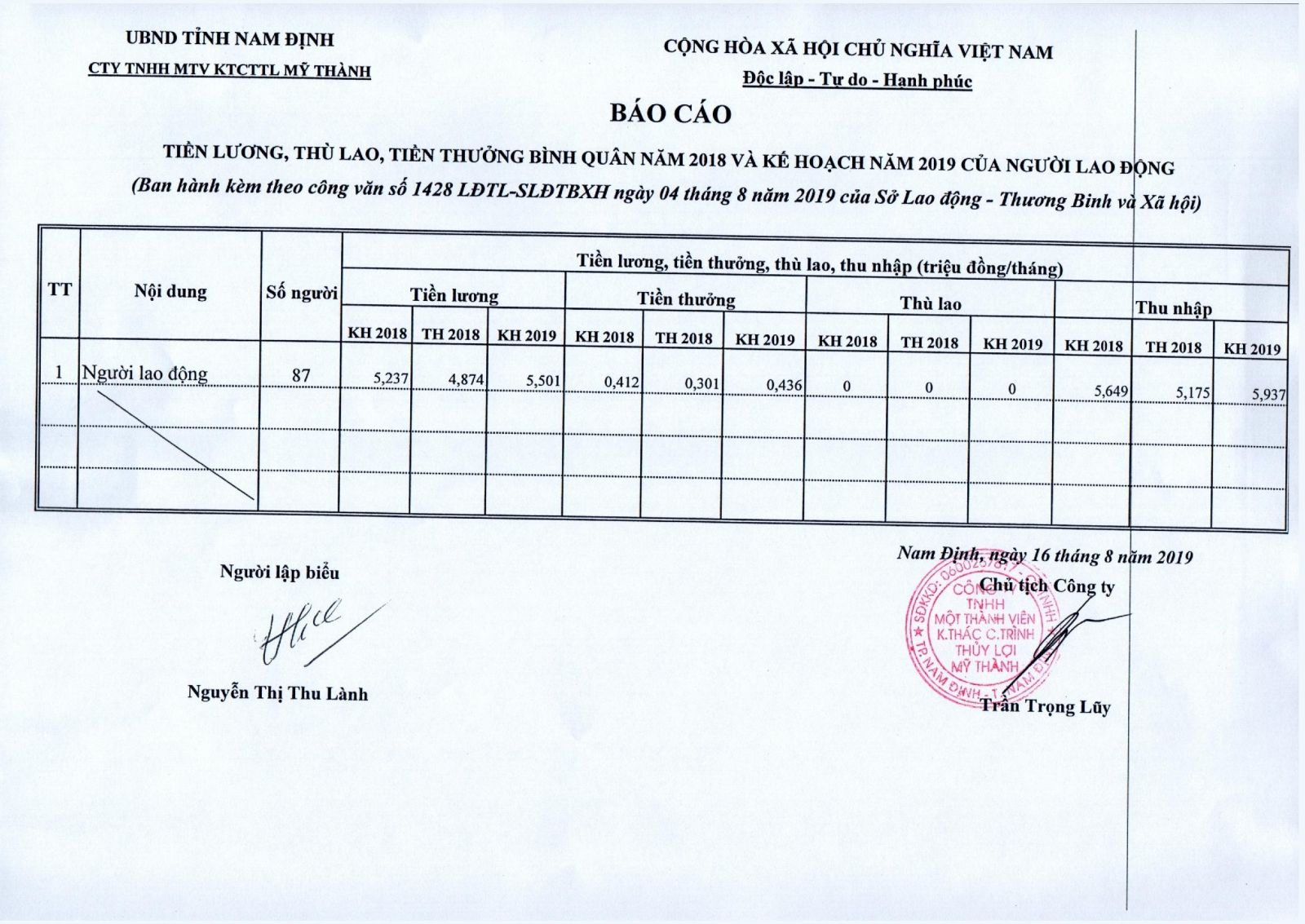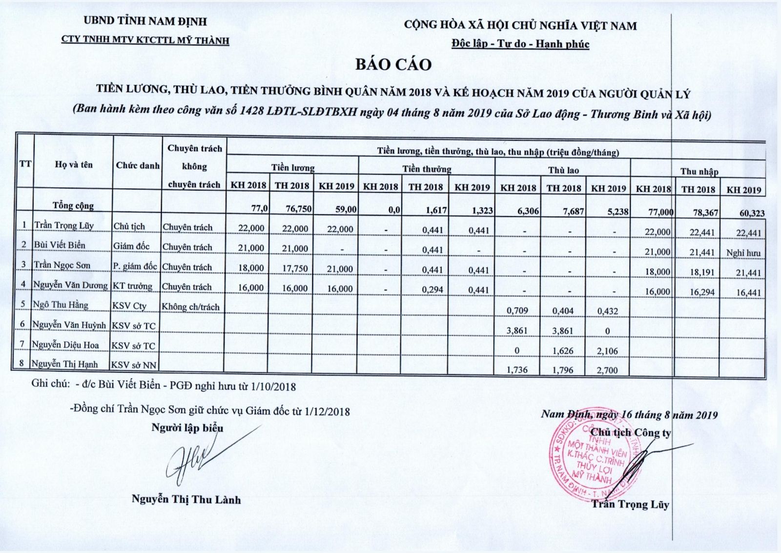 Báo cáo công khai chế độ lương, thưởng 2016 07-10-2016