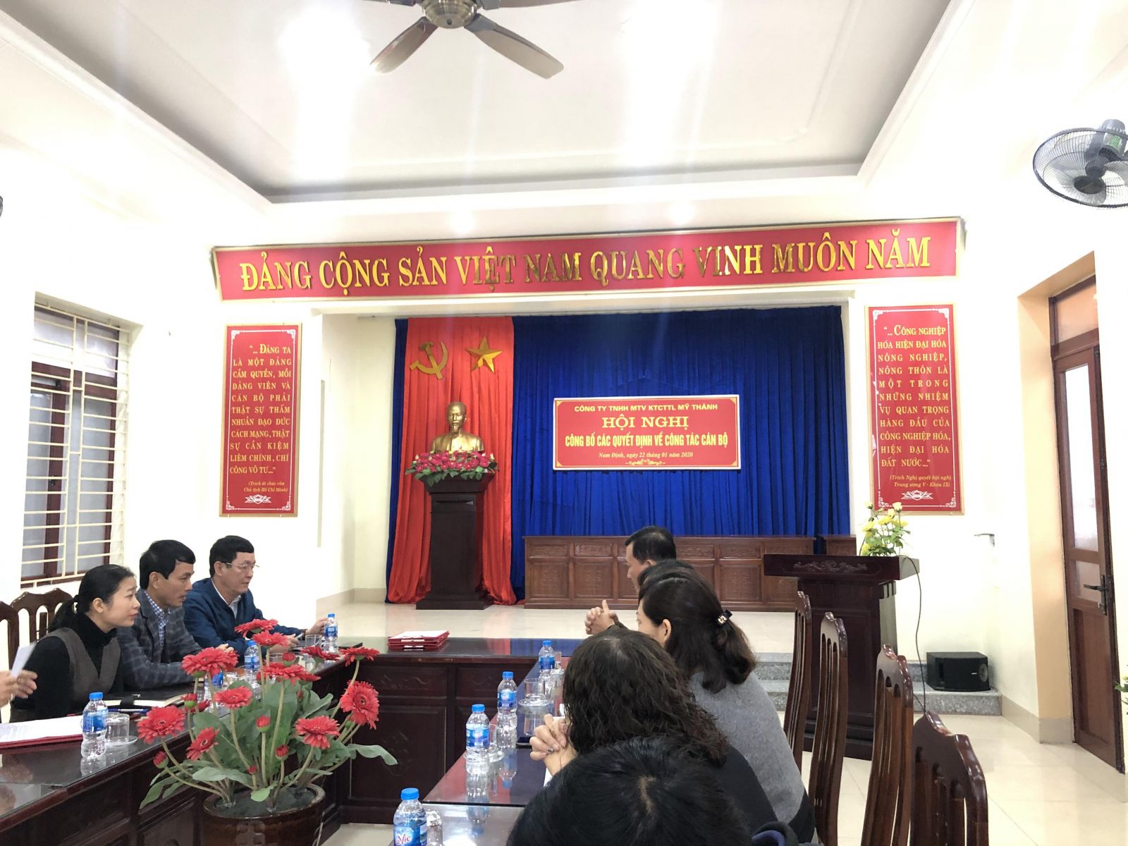 Vào ngày 22 tháng 01 năm 2020 công ty TNHH MTV KTCT Thủy lợi Mỹ Thành đã tổ chức Hội nghị: Công bố các quyết định về công tác cán bộ.