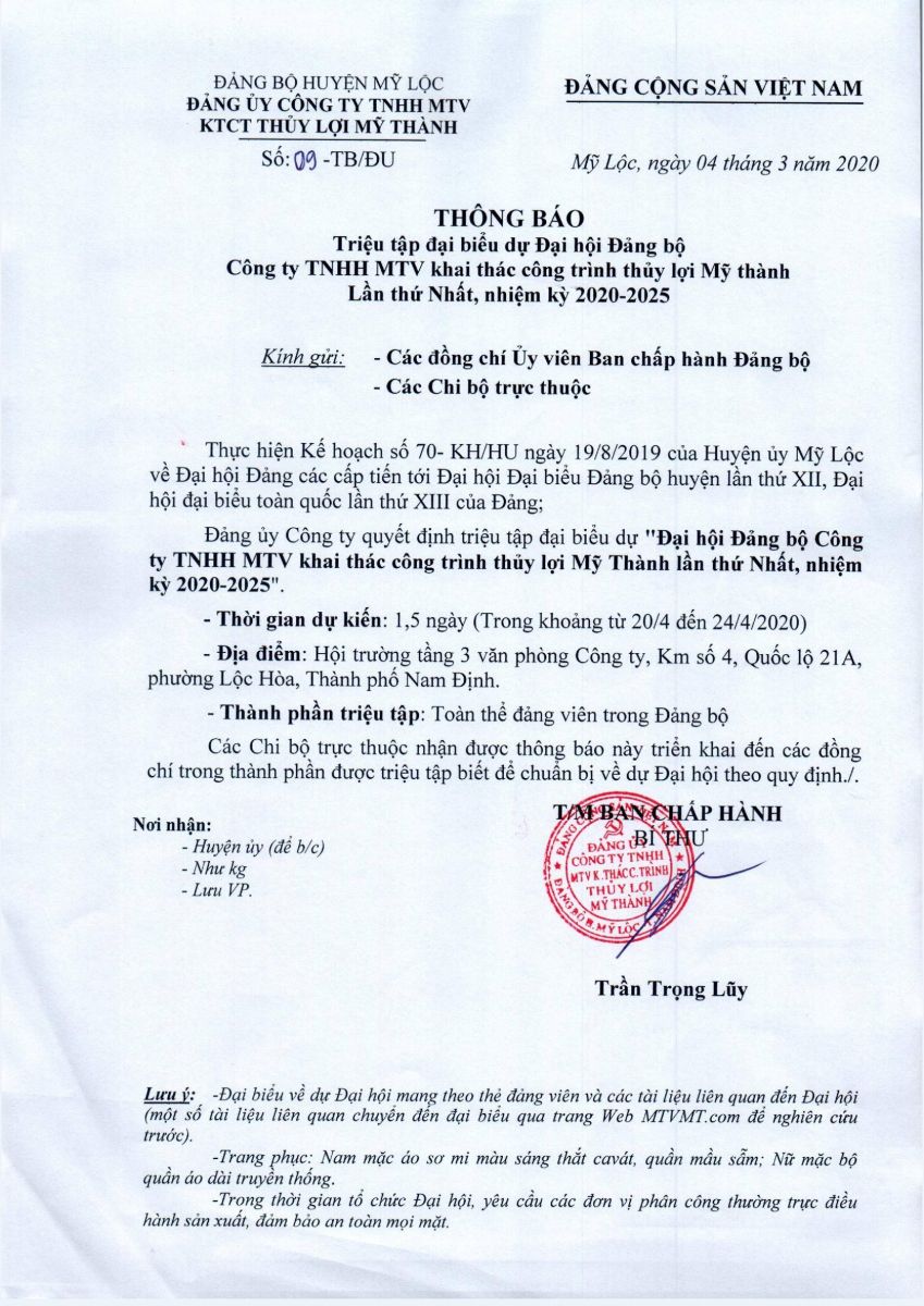 - Quyết định về việc phê duyệt danh mục, kế hoạch sửa chữa thường xuyên công trình thuỷ lợi năm 2026 của Công ty TNHH MTV KTCTTL Mỹ Thành