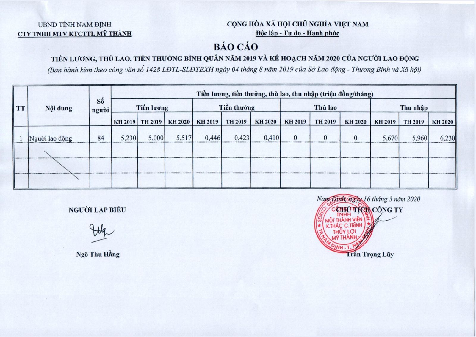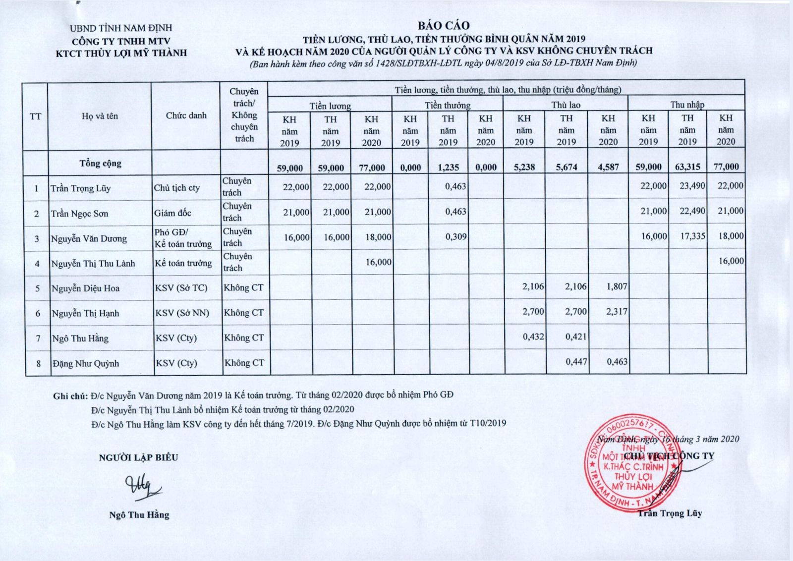 Báo cáo công khai chế độ lương, thưởng 2016 07-10-2016