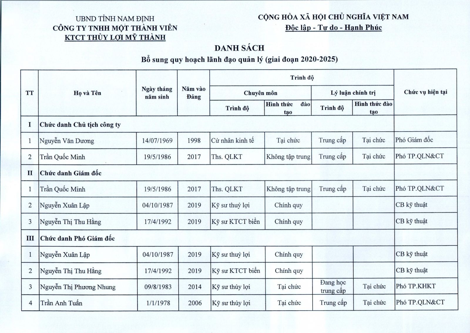 - Quyết định về việc phê duyệt danh mục, kế hoạch sửa chữa thường xuyên công trình thuỷ lợi năm 2026 của Công ty TNHH MTV KTCTTL Mỹ Thành