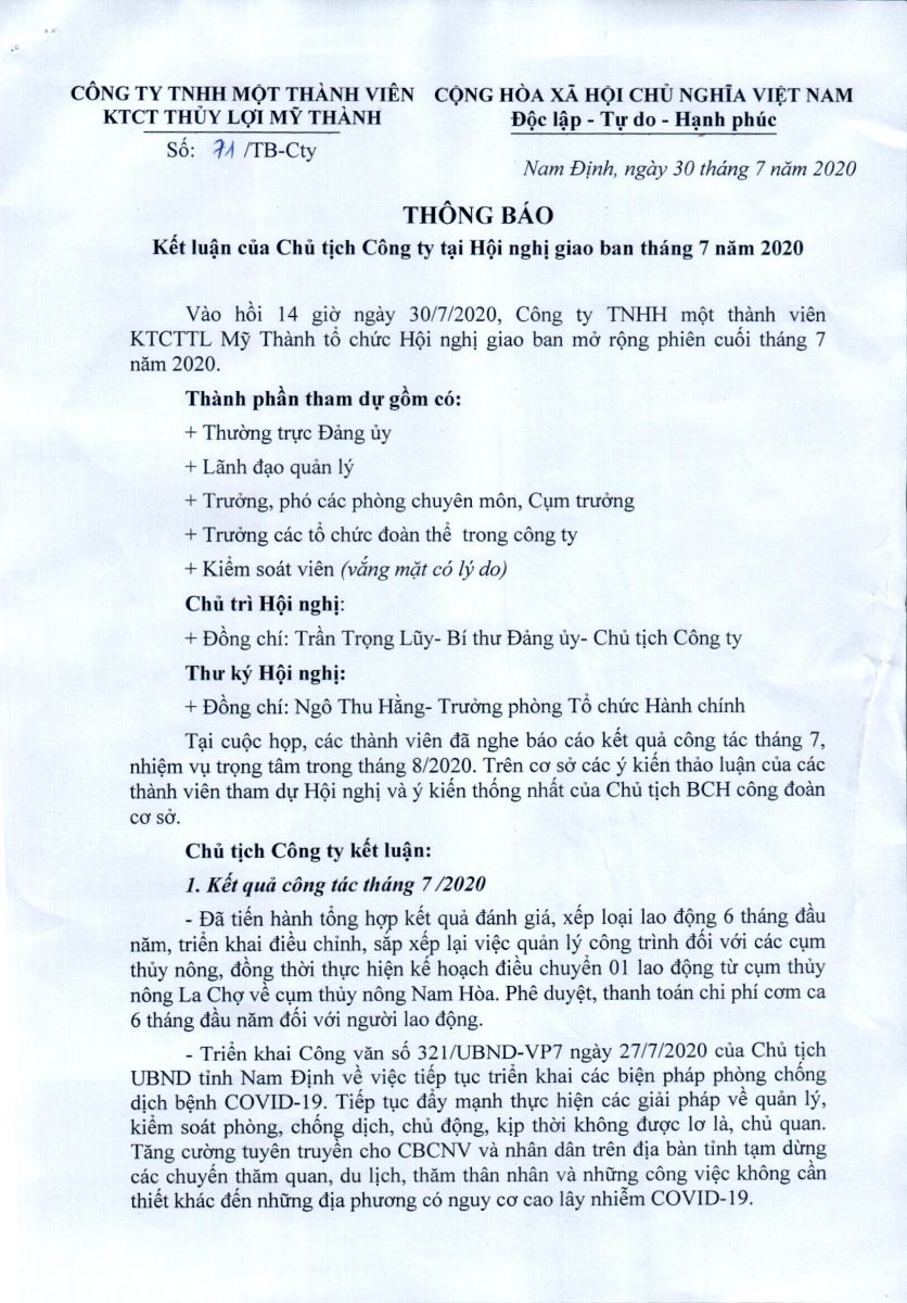 - Quyết định về việc phê duyệt danh mục, kế hoạch sửa chữa thường xuyên công trình thuỷ lợi năm 2026 của Công ty TNHH MTV KTCTTL Mỹ Thành