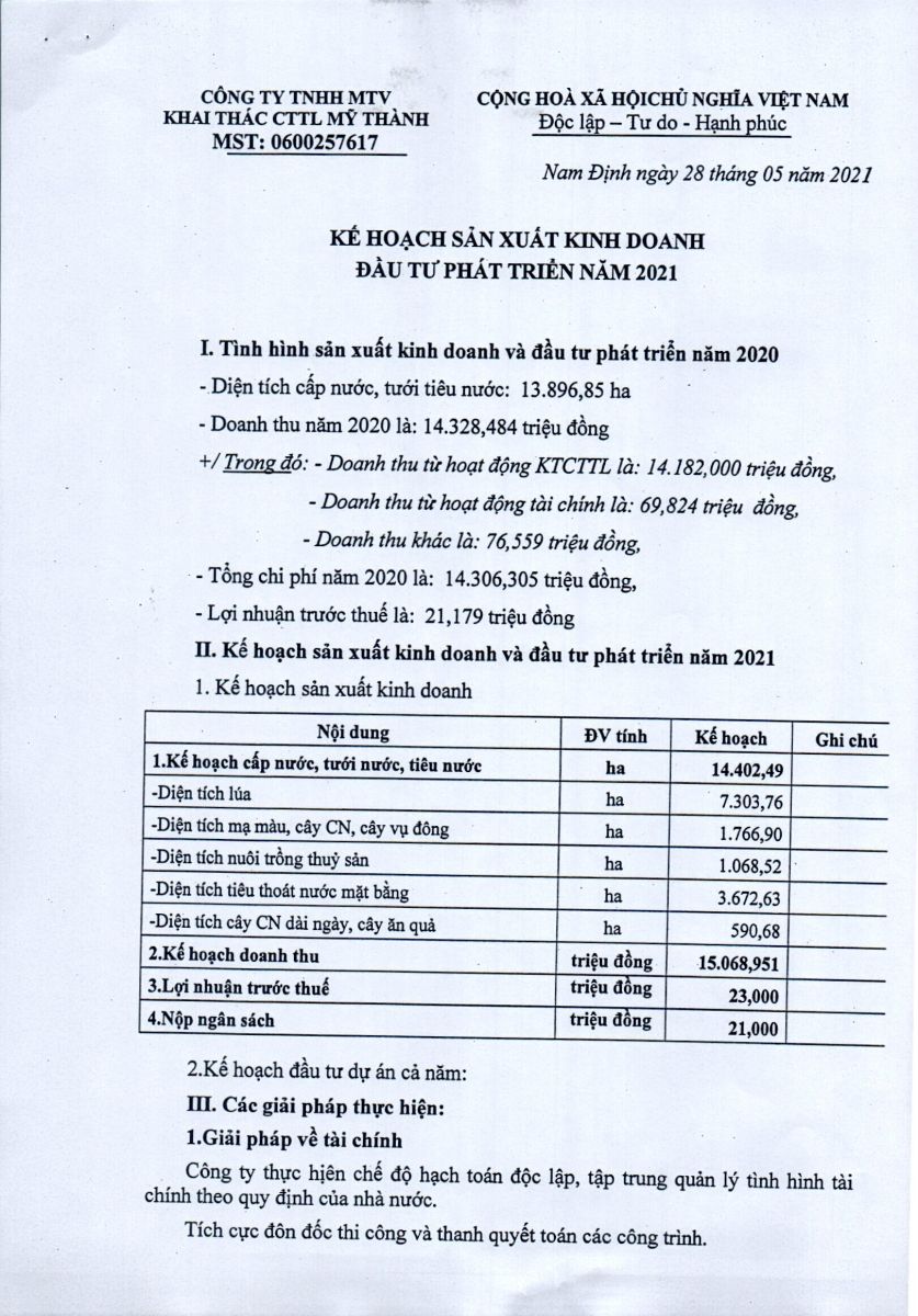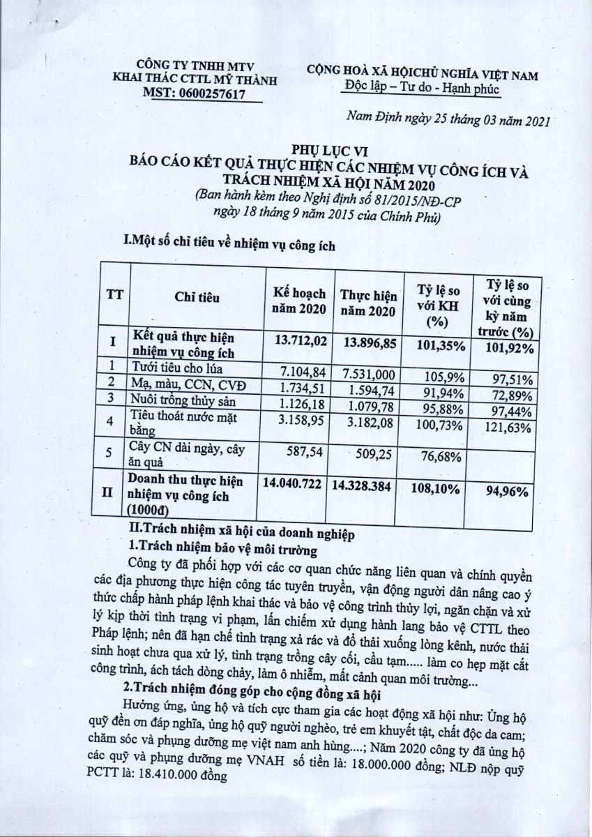 - Quyết định về việc phê duyệt danh mục, kế hoạch sửa chữa thường xuyên công trình thuỷ lợi năm 2026 của Công ty TNHH MTV KTCTTL Mỹ Thành
