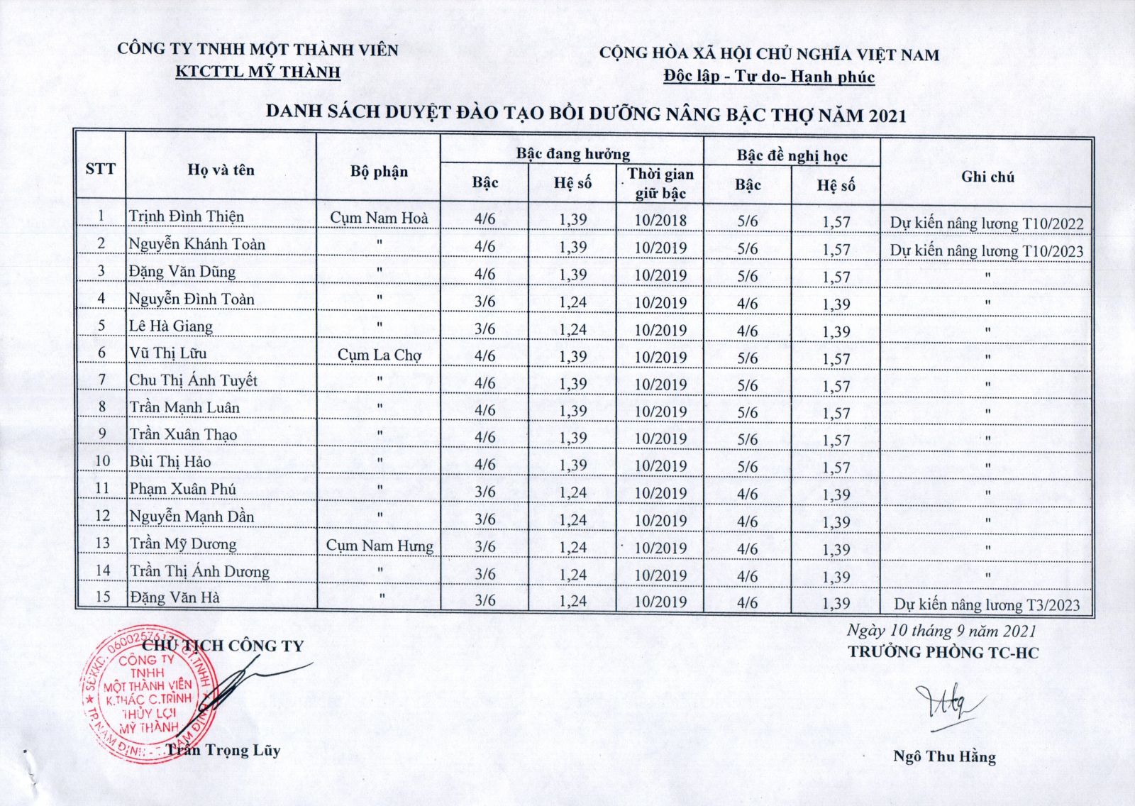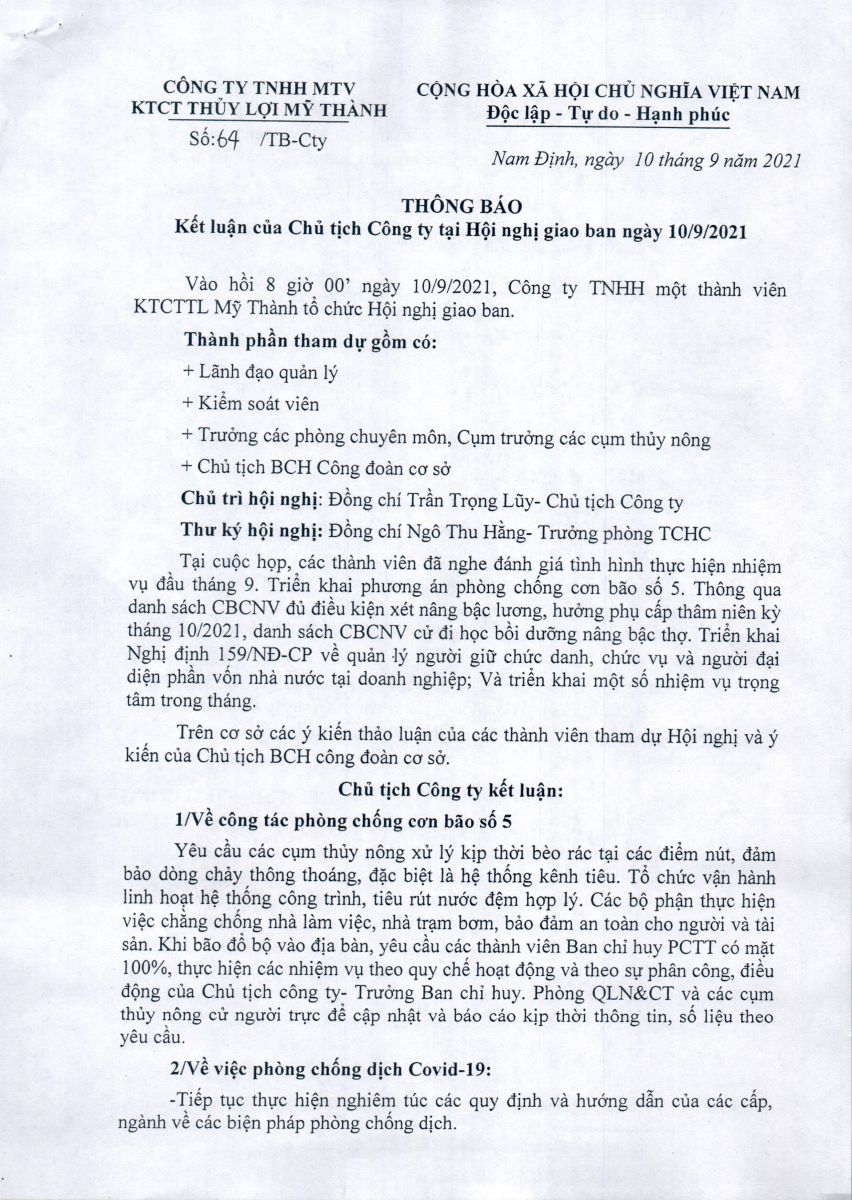 - Quyết định về việc phê duyệt danh mục, kế hoạch sửa chữa thường xuyên công trình thuỷ lợi năm 2026 của Công ty TNHH MTV KTCTTL Mỹ Thành