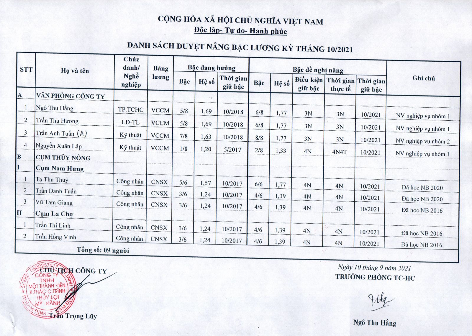 - Quyết định về việc bổ nhiệm lại chức vụ Cụm trưởng cụm thuỷ nông