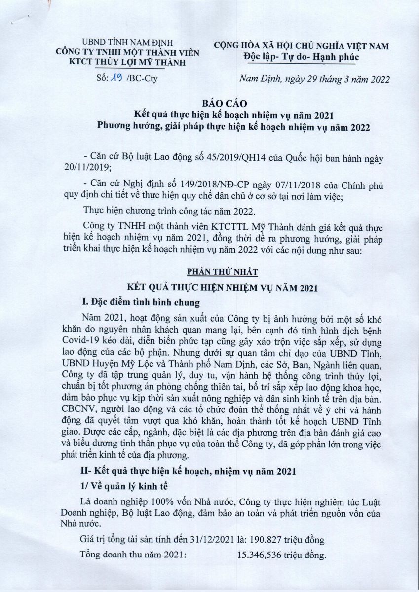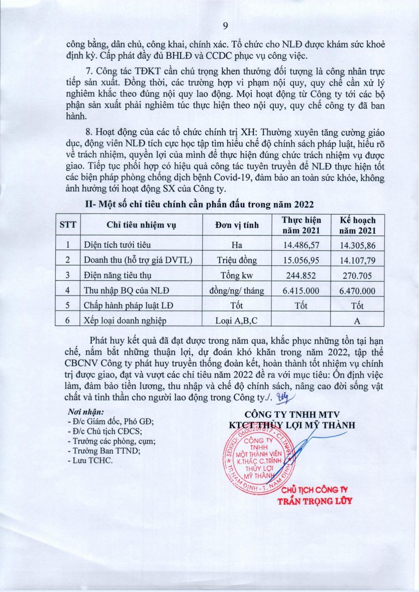 - Quyết định về việc phê duyệt danh mục, kế hoạch sửa chữa thường xuyên công trình thuỷ lợi năm 2026 của Công ty TNHH MTV KTCTTL Mỹ Thành