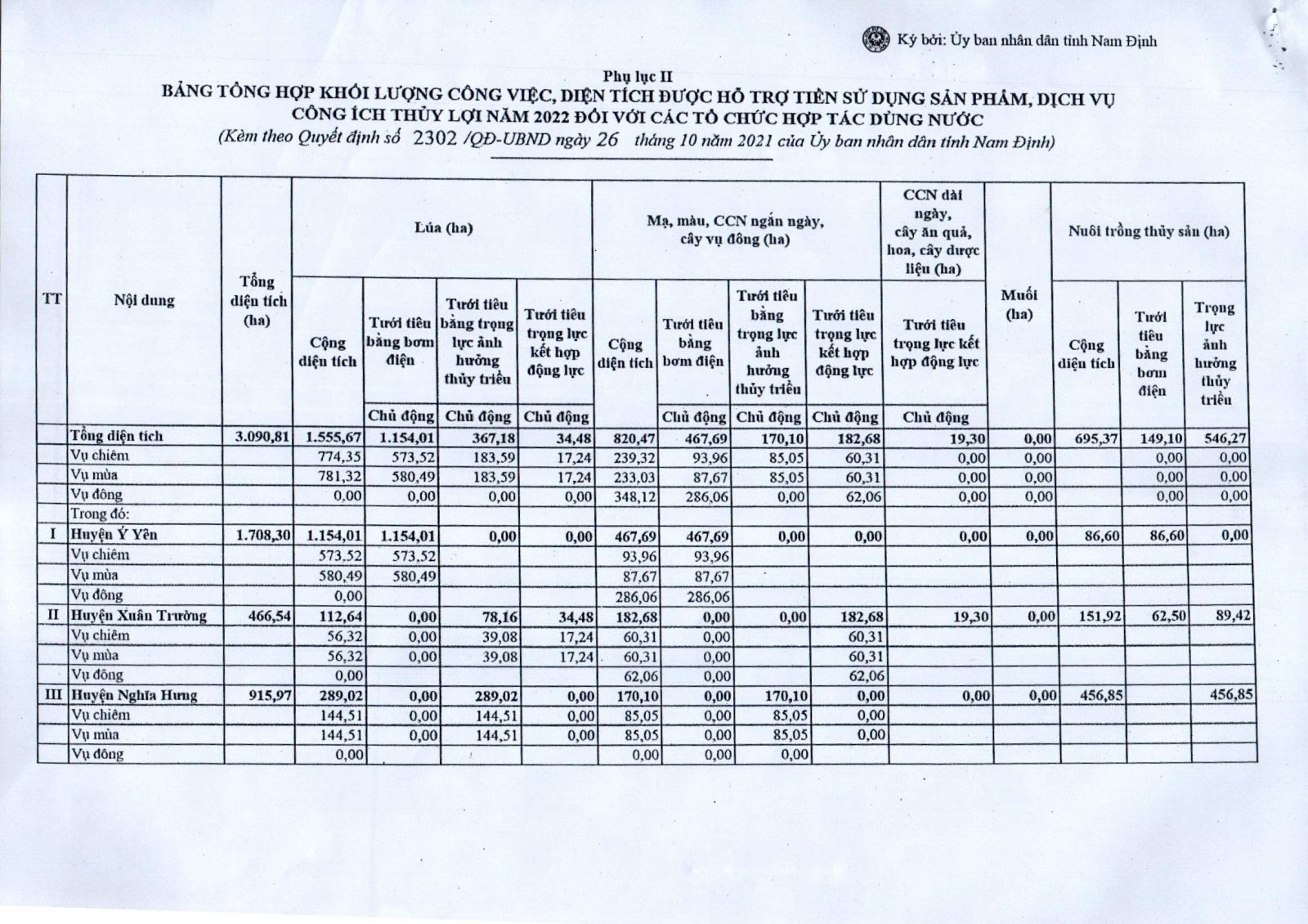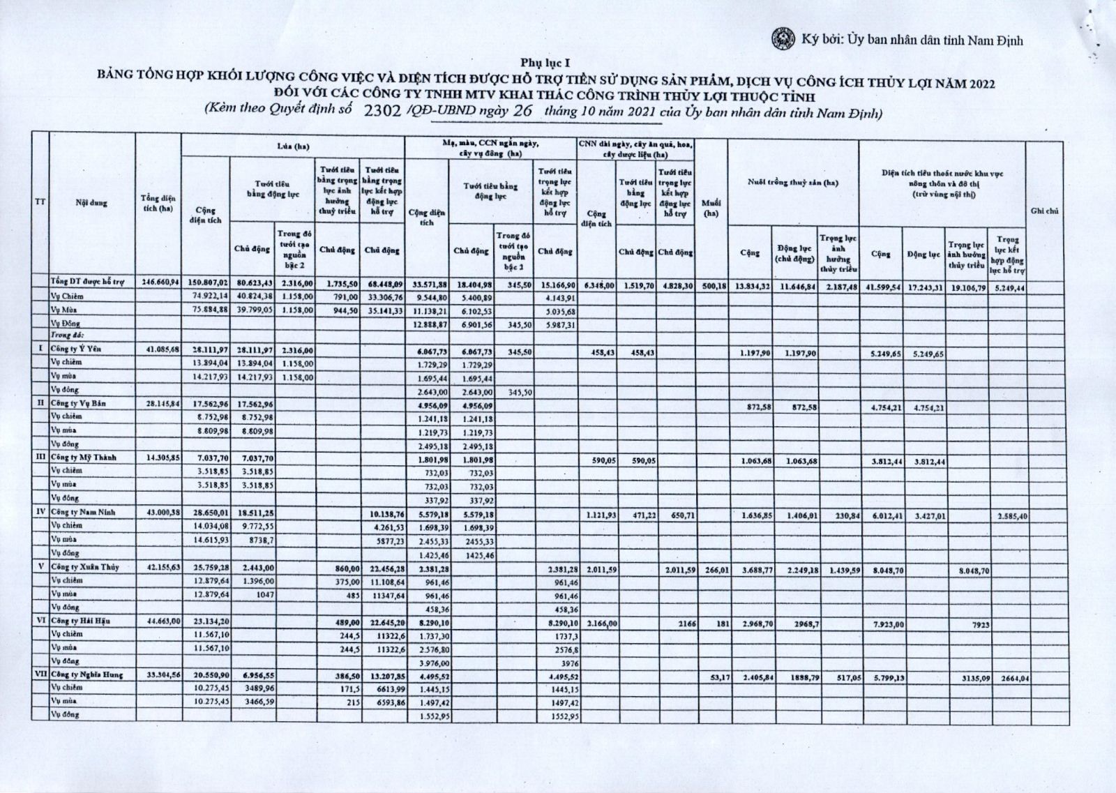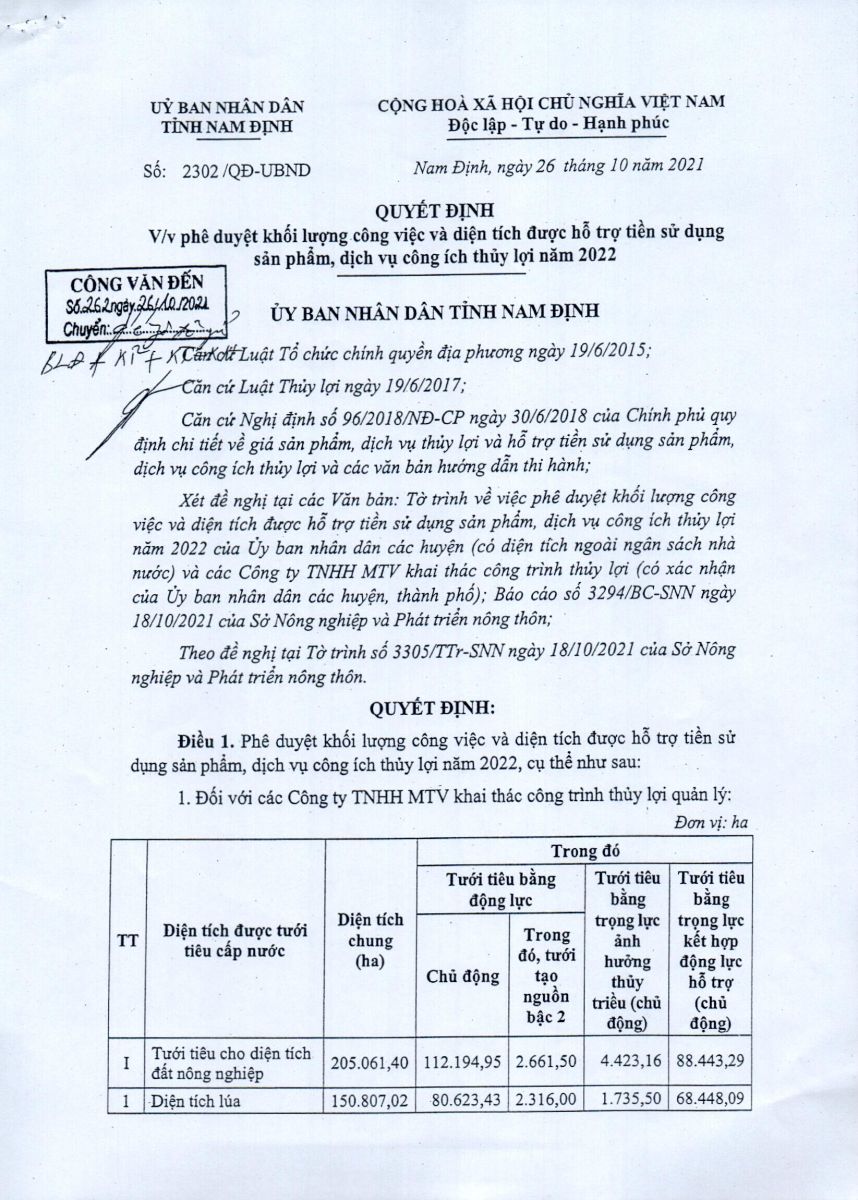 - Quyết định về việc phê duyệt điều chỉnh, bổ sung khối lượng công việc và diện tích được hỗ trợ tiền sử dụng sản phẩm, dịch vụ công ích thuỷ lợi năm 2026