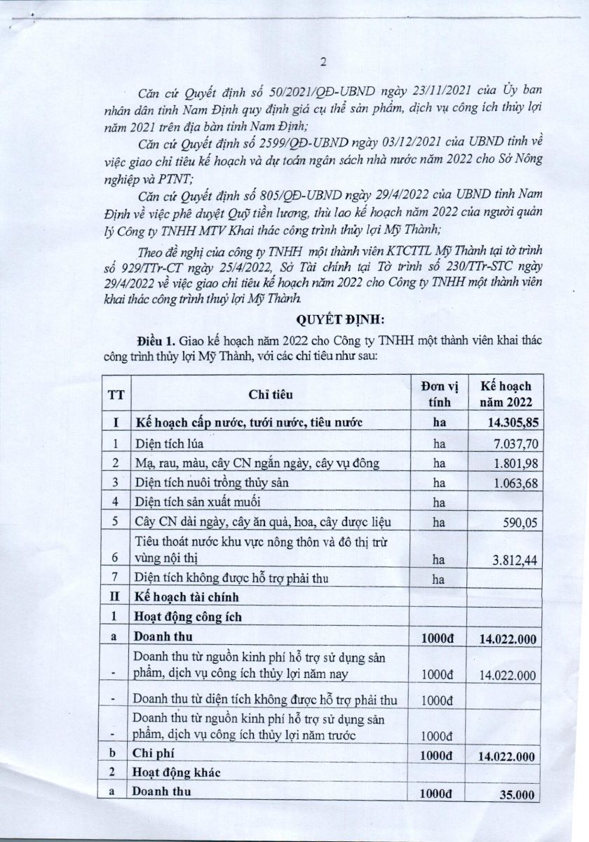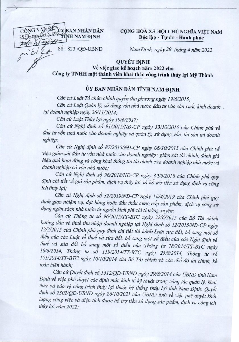 Quyết định của UBND Tỉnh Nam Định về việc giao kế hoạch năm 2025 cho Công ty 01-07-2025