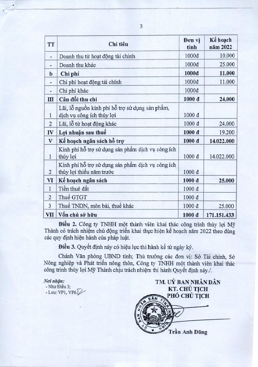 - Quyết định về việc phê duyệt danh mục, kế hoạch sửa chữa thường xuyên công trình thuỷ lợi năm 2026 của Công ty TNHH MTV KTCTTL Mỹ Thành