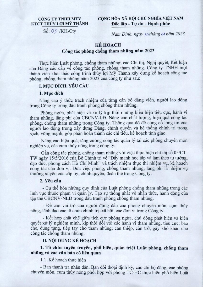- Quyết định về việc phê duyệt danh mục, kế hoạch sửa chữa thường xuyên công trình thuỷ lợi năm 2026 của Công ty TNHH MTV KTCTTL Mỹ Thành