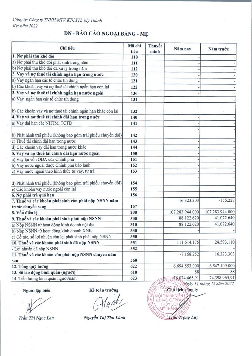 - Quyết định về việc phê duyệt danh mục, kế hoạch sửa chữa thường xuyên công trình thuỷ lợi năm 2026 của Công ty TNHH MTV KTCTTL Mỹ Thành
