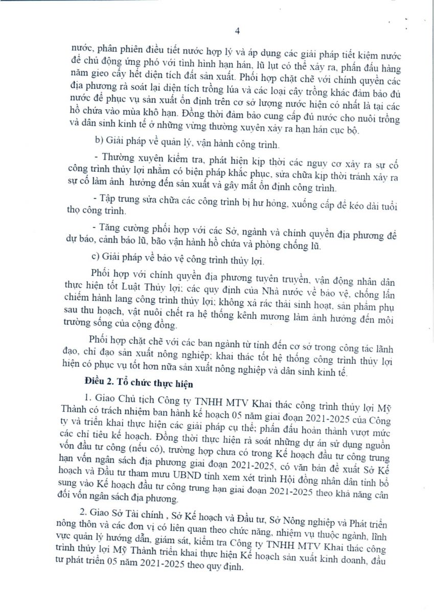 - Quyết định về việc phê duyệt danh mục, kế hoạch sửa chữa thường xuyên công trình thuỷ lợi năm 2026 của Công ty TNHH MTV KTCTTL Mỹ Thành