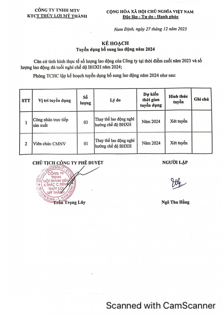 Danh sách tuyển dụng lao động đợt 1 năm 2024 28-06-2024