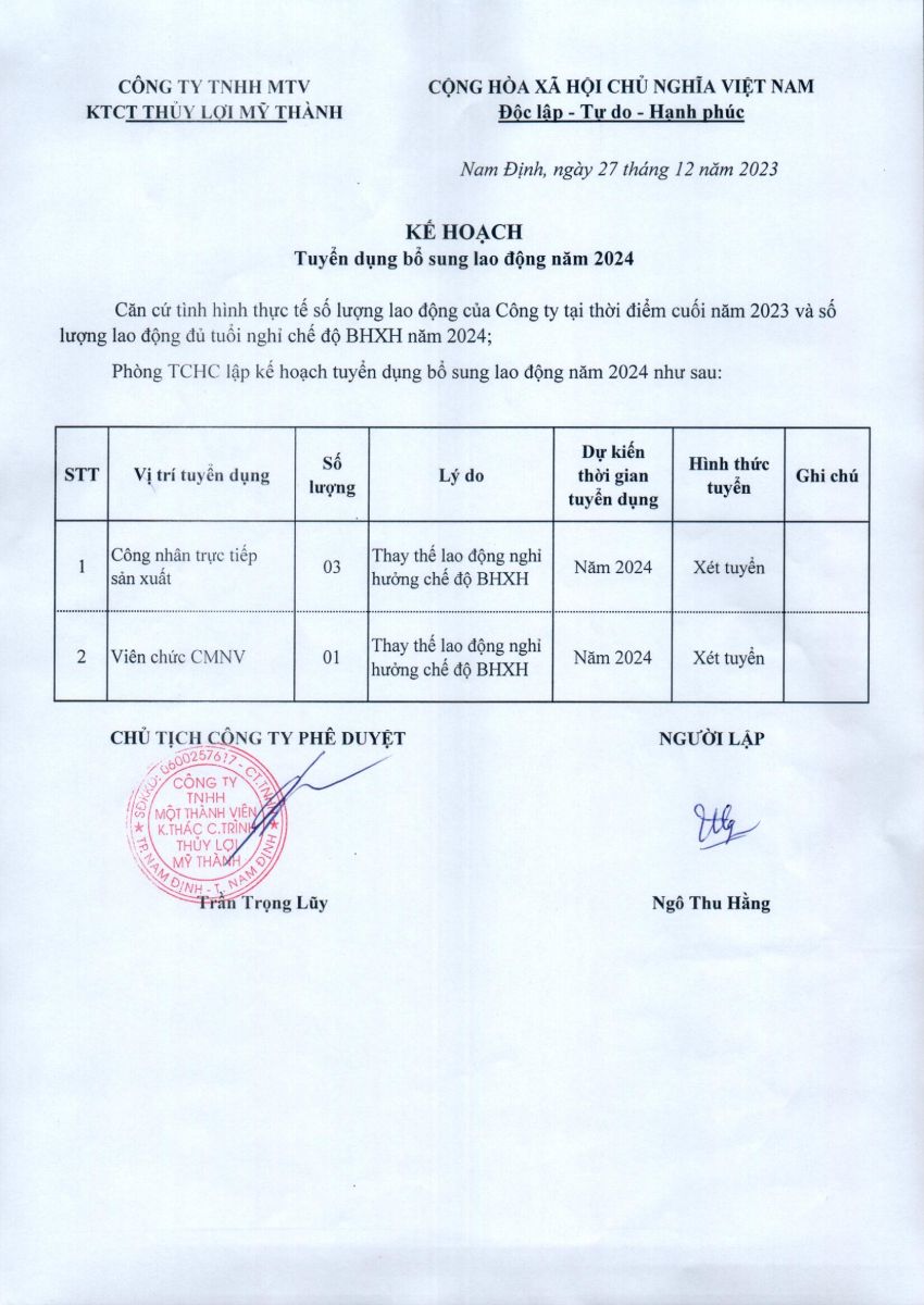 • Quyết định về việc phê duyệt danh mục, kế hoạch sửa chữa thường xuyên công trình thuỷ lợi năm 2026 của Công ty TNHH MTV KTCTTL Mỹ Thành