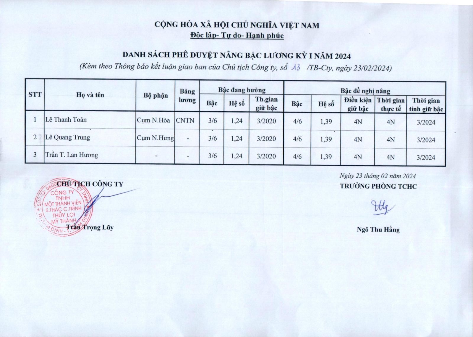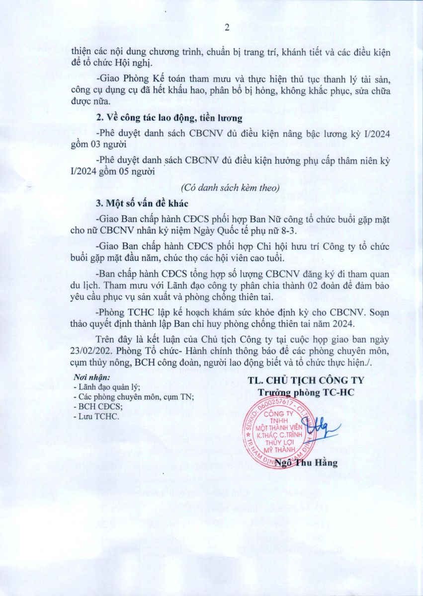 • Kết luận của chủ tịch công ty tại hội nghi giao ban ngày 23/02/2024