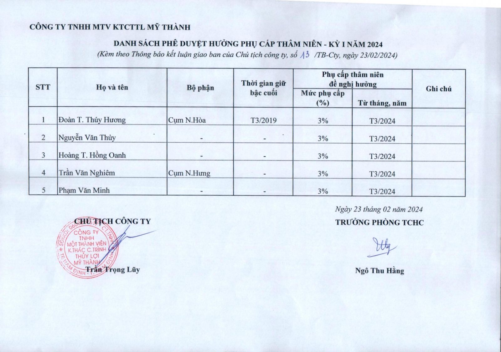 CÔNG TY TNHH MỘT THÀNH VIÊN KTCT THUỶ LỢI MỸ THÀNH