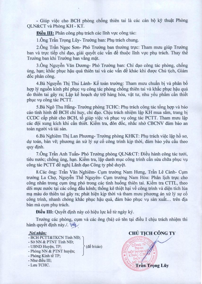 - Quyết định về việc bổ nhiệm lại chức vụ Cụm trưởng cụm thuỷ nông