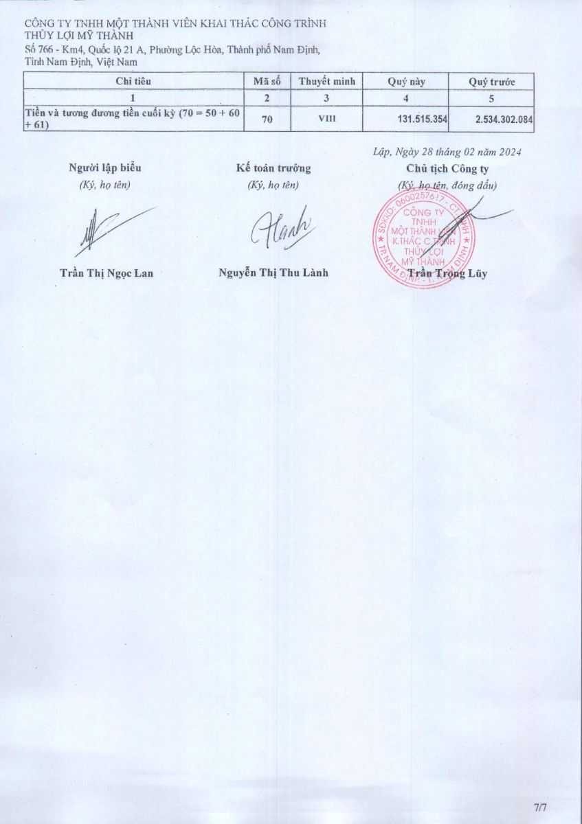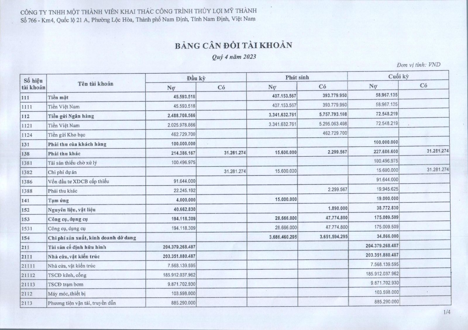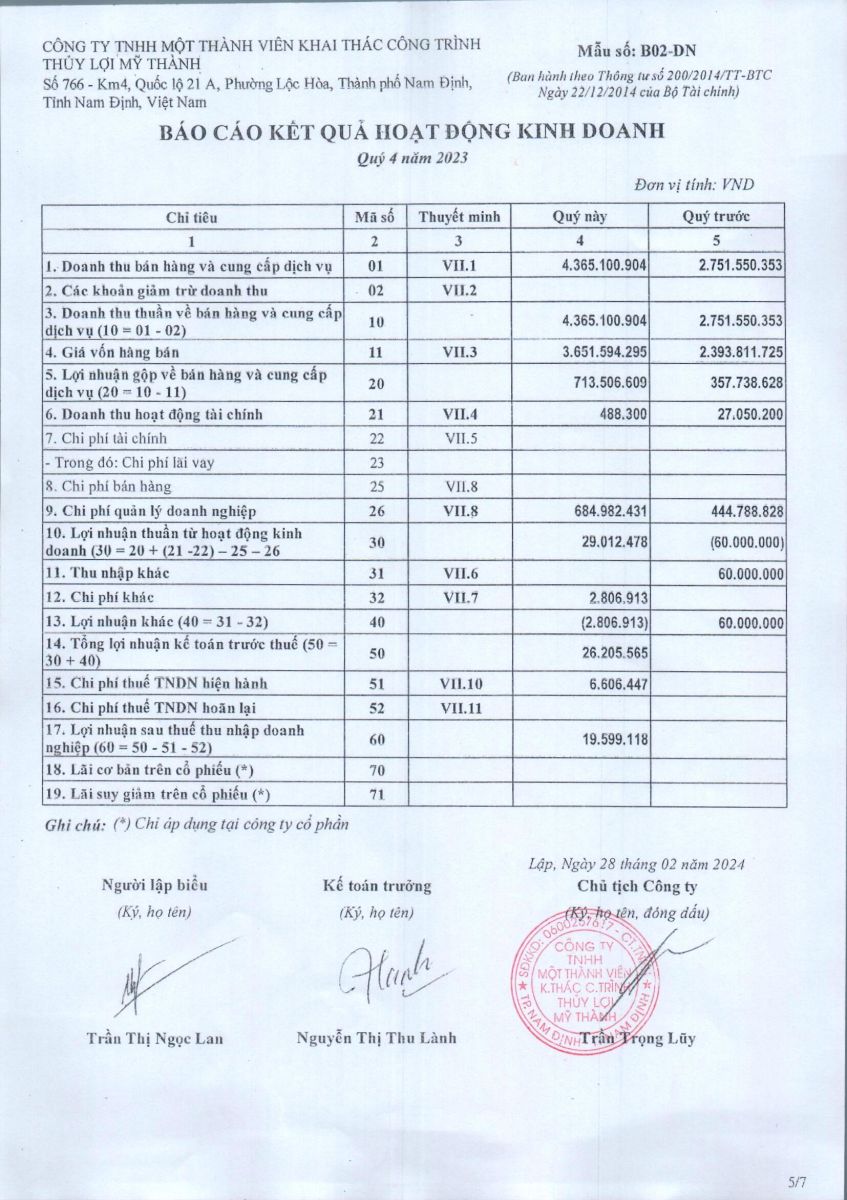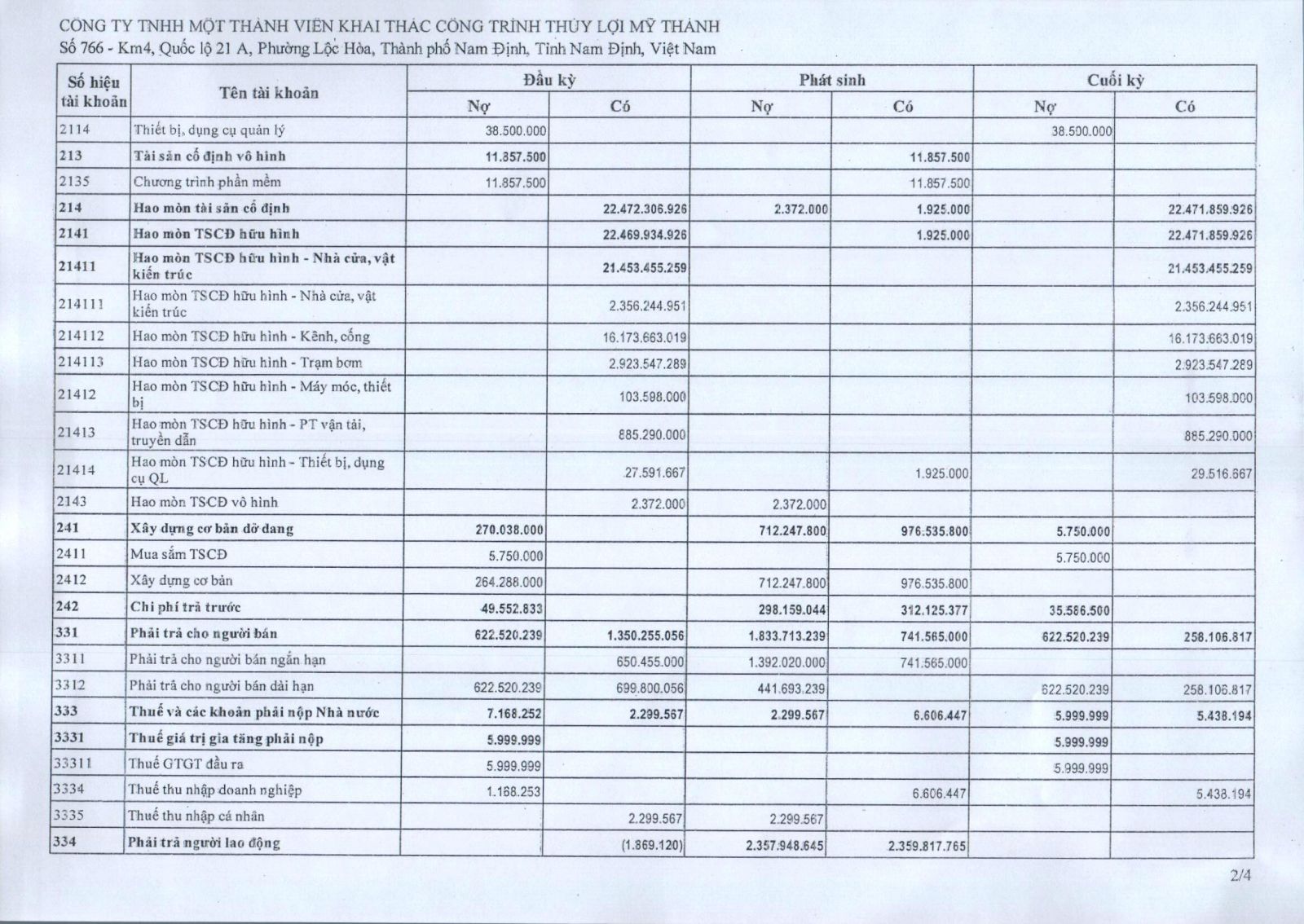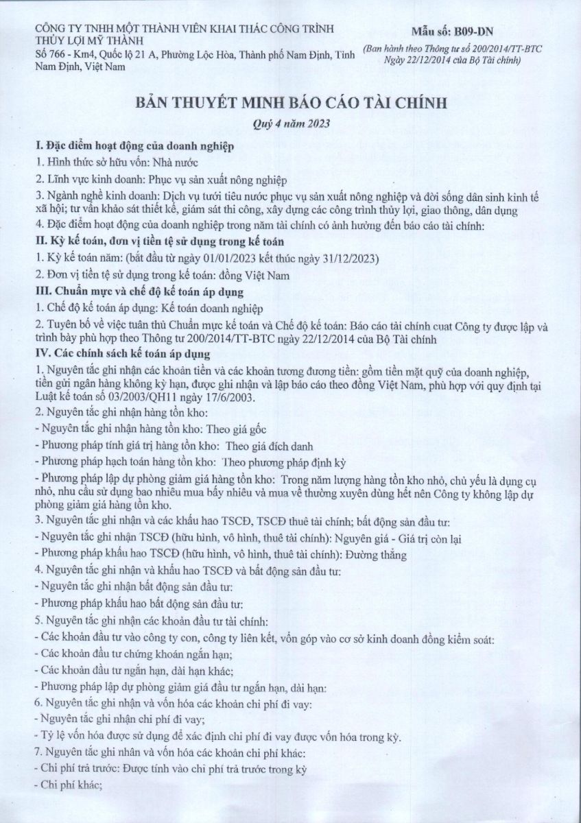 - Quyết định về việc phê duyệt danh mục, kế hoạch sửa chữa thường xuyên công trình thuỷ lợi năm 2026 của Công ty TNHH MTV KTCTTL Mỹ Thành