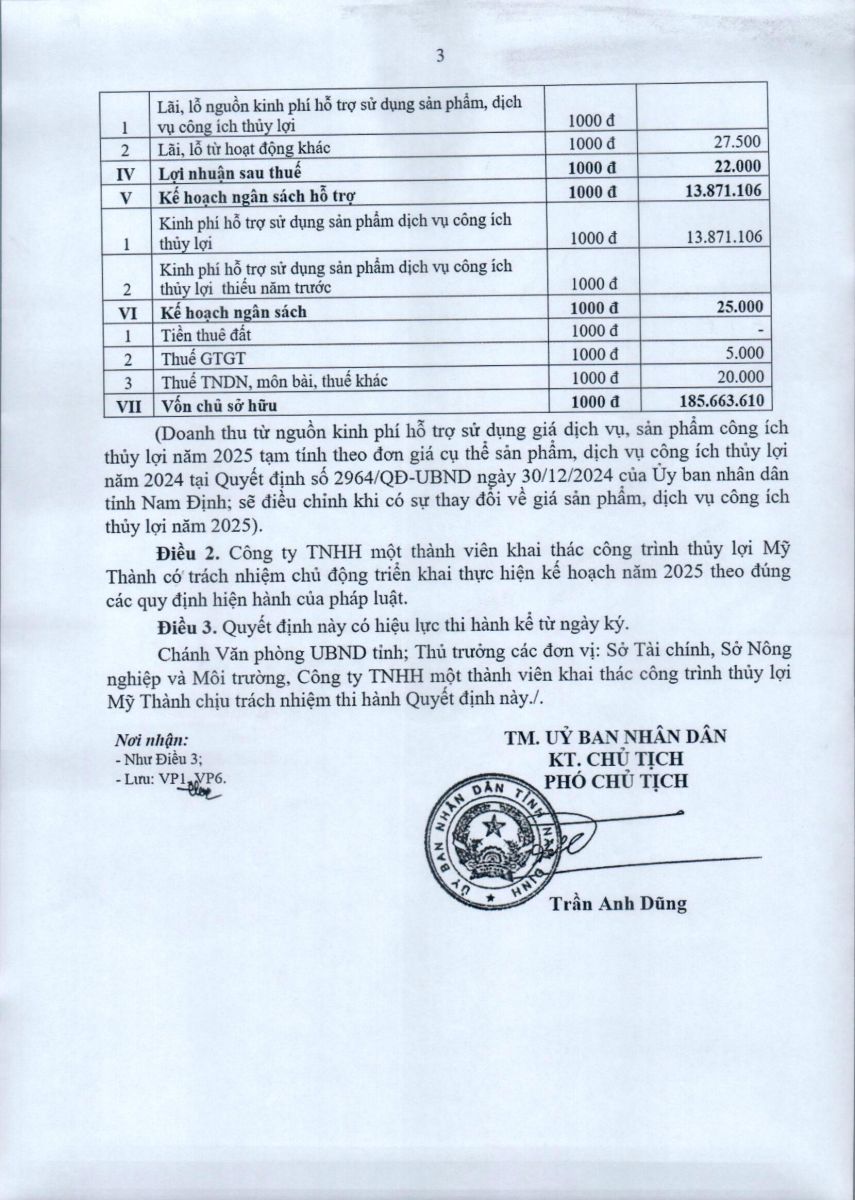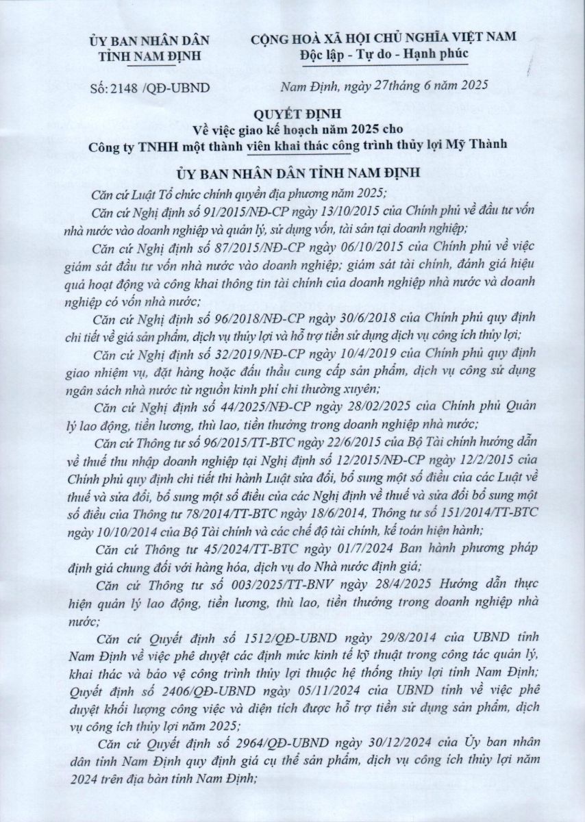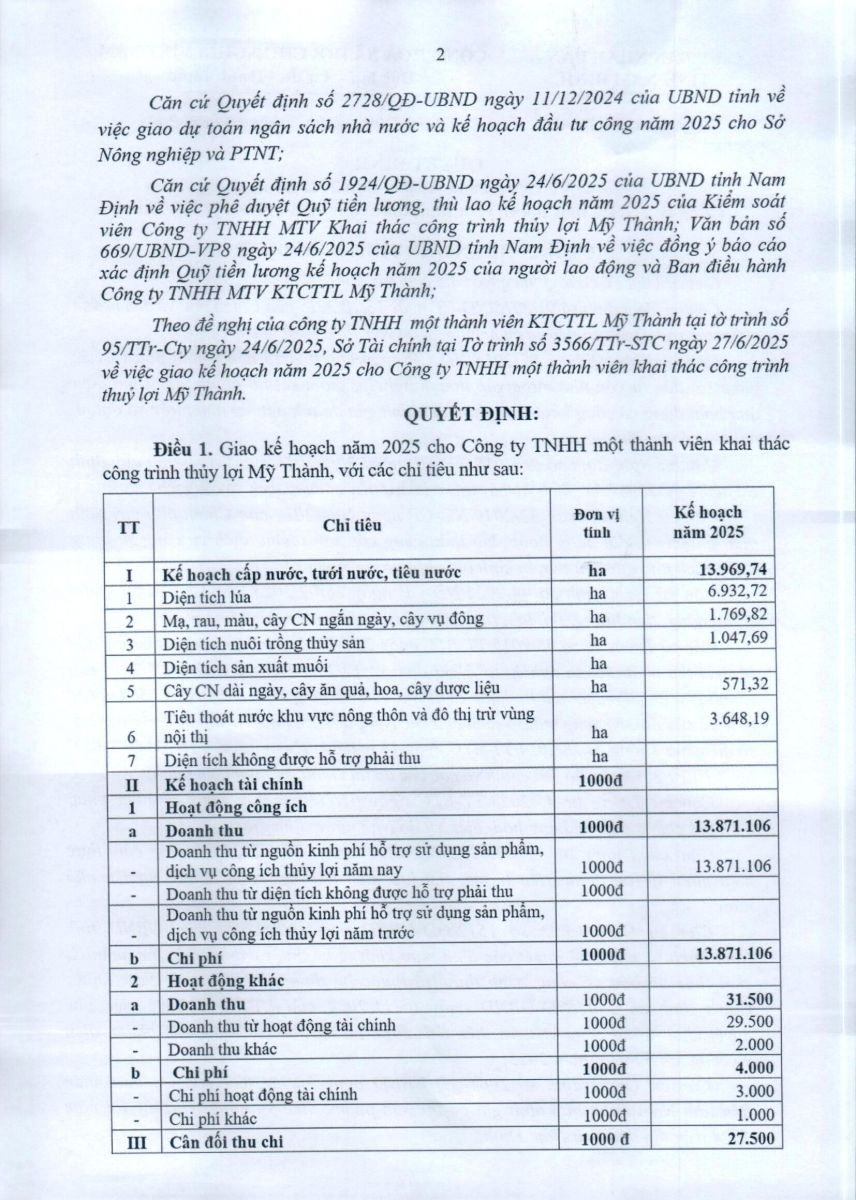 - Quyết định về việc phê duyệt danh mục, kế hoạch sửa chữa thường xuyên công trình thuỷ lợi năm 2026 của Công ty TNHH MTV KTCTTL Mỹ Thành