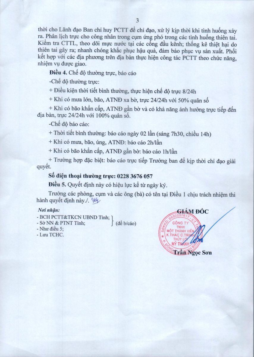 - Quyết định về việc bổ nhiệm lại chức vụ Cụm trưởng cụm thuỷ nông
